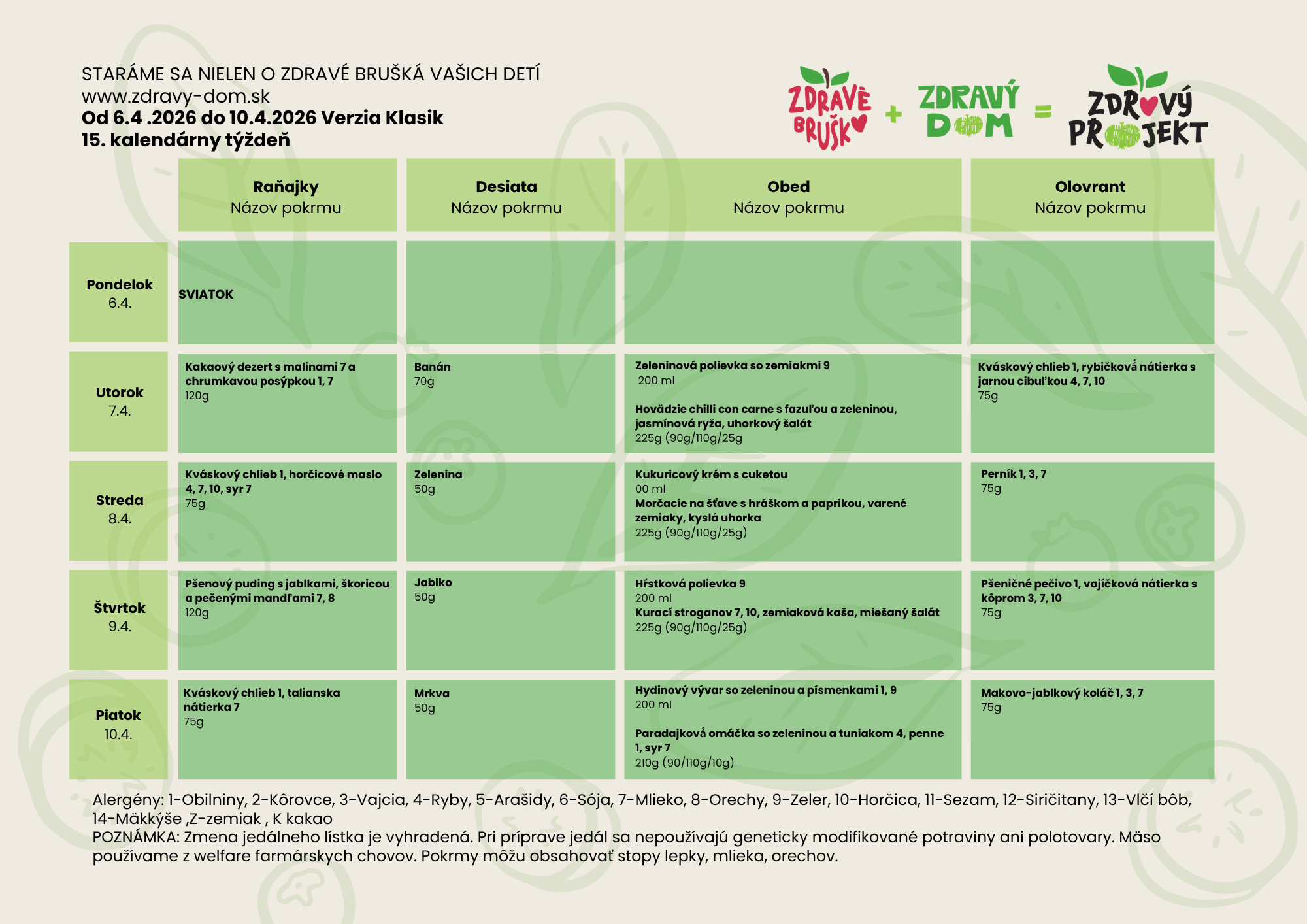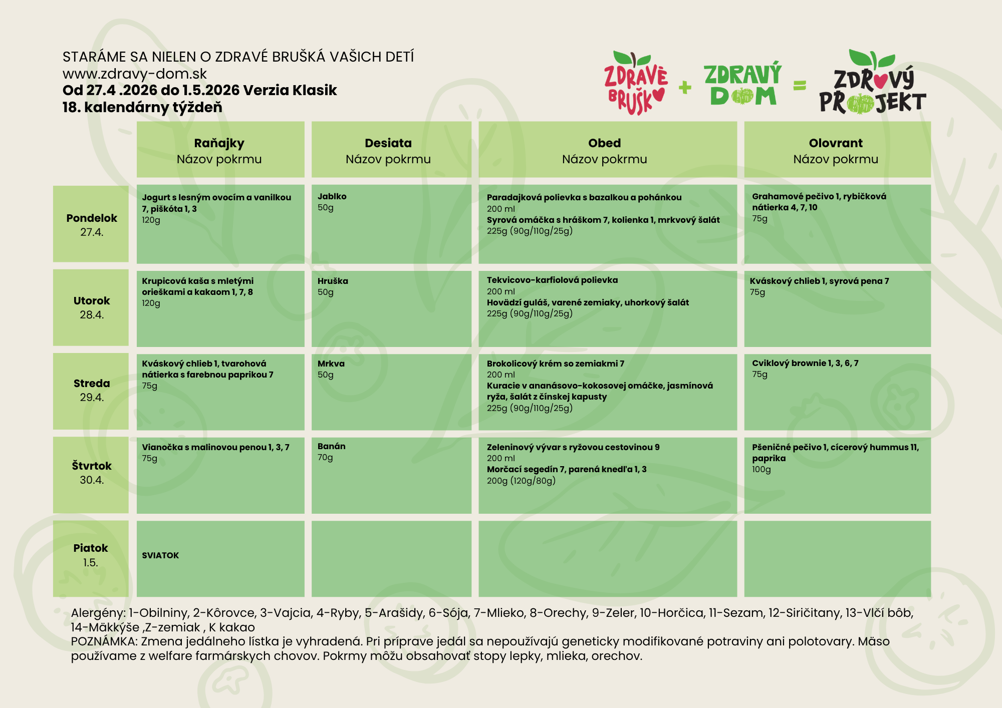 Jedálniček pre škôlky